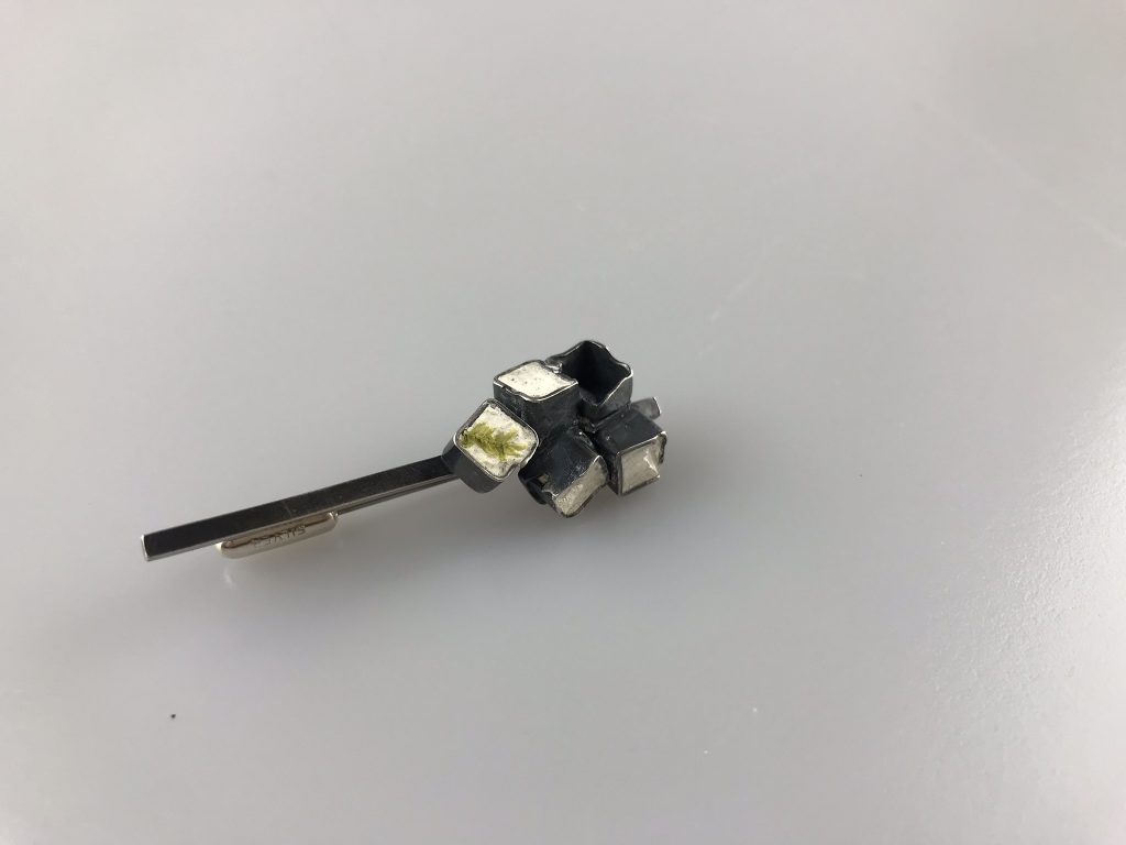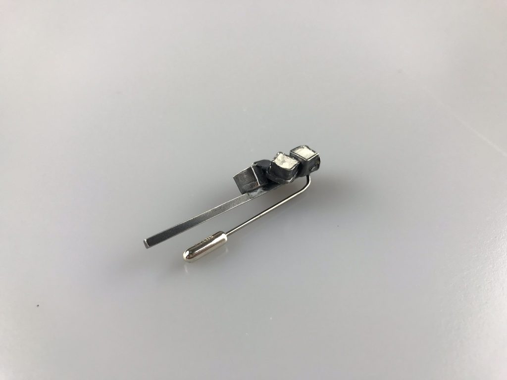 Oxidised silver brutalist pin measuring 5cm with a steel brooch pin.